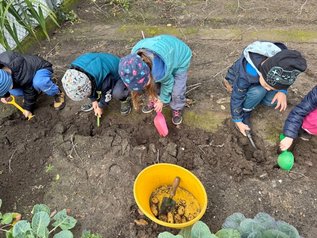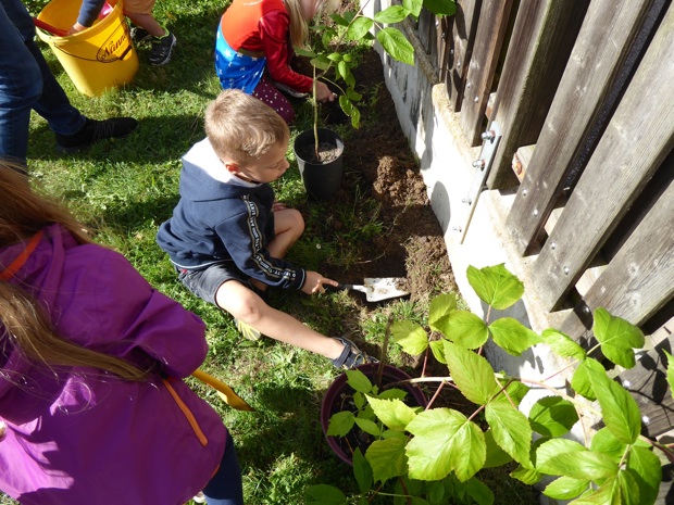 Im Sommer 2024 startete das erste Projekt unter Begleitung und Anleitung von Christiane Wiegand mit den Kindern der Dino-Gruppe. Die Chemie zwischen Klein und Groß stimmte sofort und die ältesten Kita-Kinder lernten begeistert 1x wöchentlich und zu jeder Jahreszeit Tiere und Pflanzen auf dem Außengelände kennen, bauten u.a. Nist- und Fledermauskästen, pflanzten Kartoffeln und legten Hochbeete an. Nach vielen spannenden und interessanten Vormittagen haben sich Christiane Wiegand als zertifizierte NABU-Naturbotschafterin und die Kinder als „Natur-Entdecker:innen“ qualifiziert.
